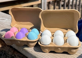 Cute egg carton with 6 egg clickers, choose white or pastel eggs.